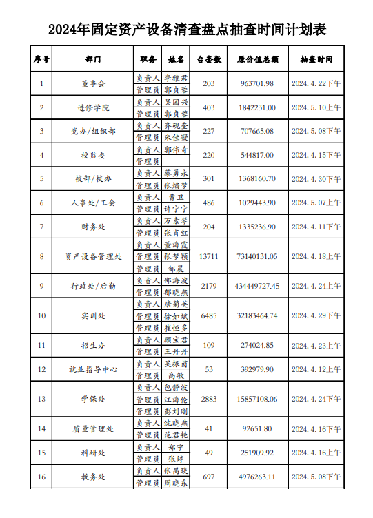 2024固定资产设备清查盘点抽查时间计划
