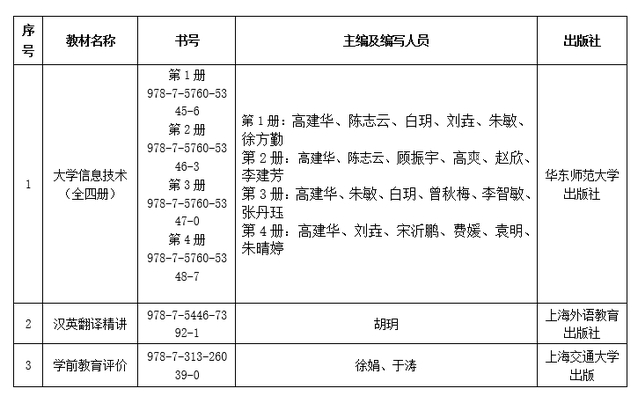 根据《上海市教育委员会关于开展“十四五”普通高等教育本科国家级规划教材第一次推荐遴选工作的通知》(沪教委高[2024]33号)要求,教务处和科研处组织开展了“十四五”普通高等教育本科国家级规划教材申报工作,共收到各二级学院(部门)提交的申报材料6份,由校学术委员会对这6份申报材料进行了评审,最终根据申报限额遴选出3本教材上报至市教委,具体名单如下: