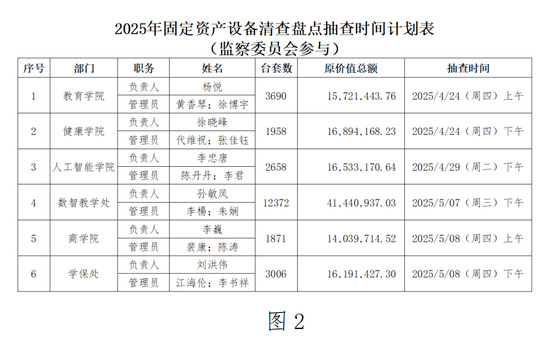 (一)本次固定资产设备盘点抽查工作自2025年4月14日正式启动,由监察委员会实施全程监督管理(具体安排详见下图1)。